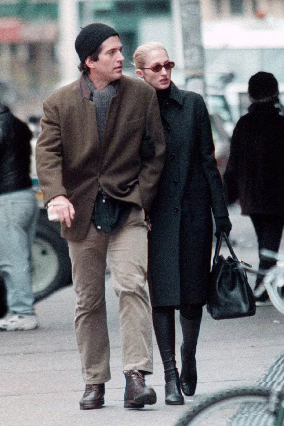 Airport style today is mostly about surrender. JFK Jr. treated travel like arrival. A long wool coat, Kangol cap, leather duffel — nothing flashy, just durable pieces that improve with age. It communicates presence. The message isn’t “I’m comfortable.” It’s “I’m composed.”