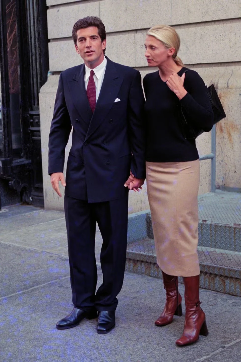 Every man should own one suit that settles the room. For JFK Jr., it was double-breasted navy with a patterned red tie and a white pocket square. The formula hasn’t aged because it was never trendy. Sharp shoulders. Clean break. Black shoes. Understatement done properly.